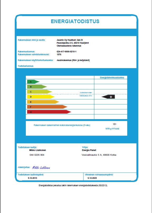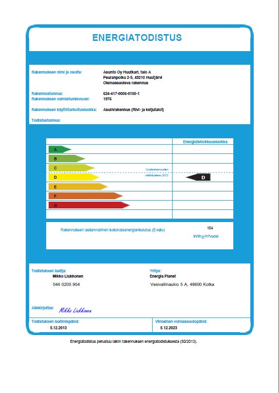 Huutkari Energiatodistus saatavissa Palveluskunta Oy