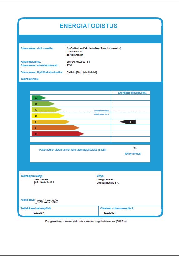 Eskolankaiku Energiatodistus saatavissa Palveluskunta Oy